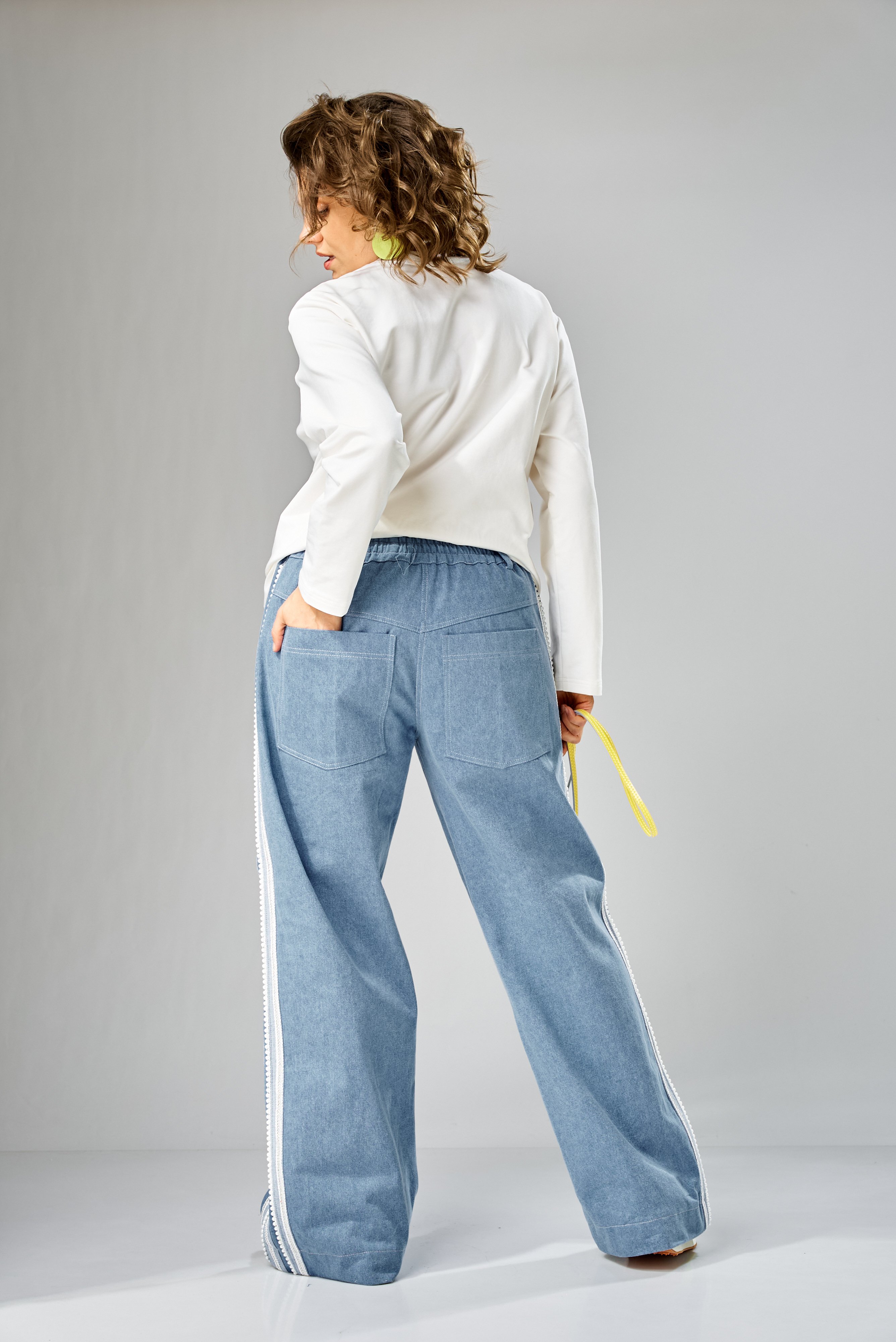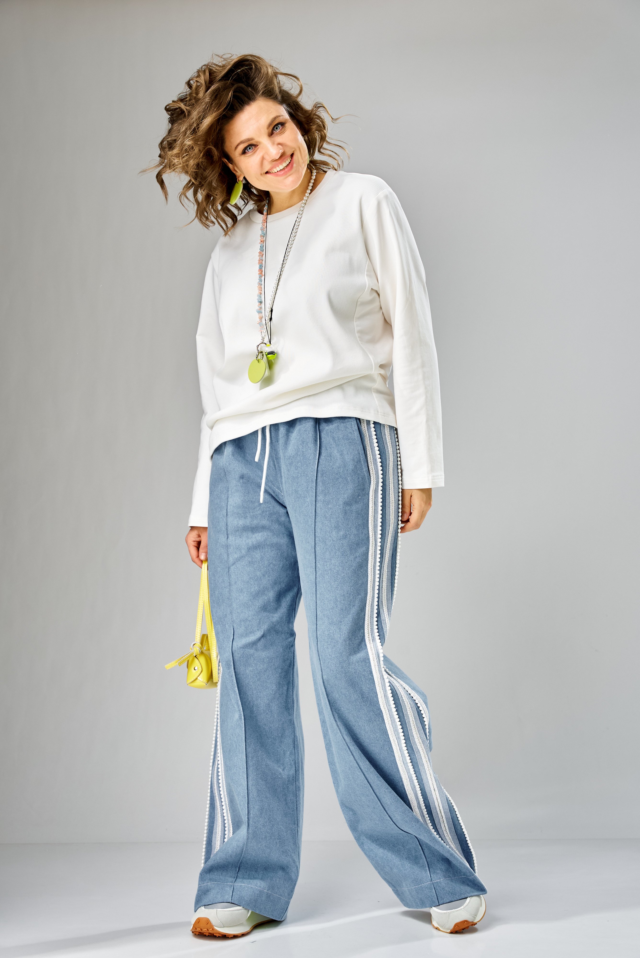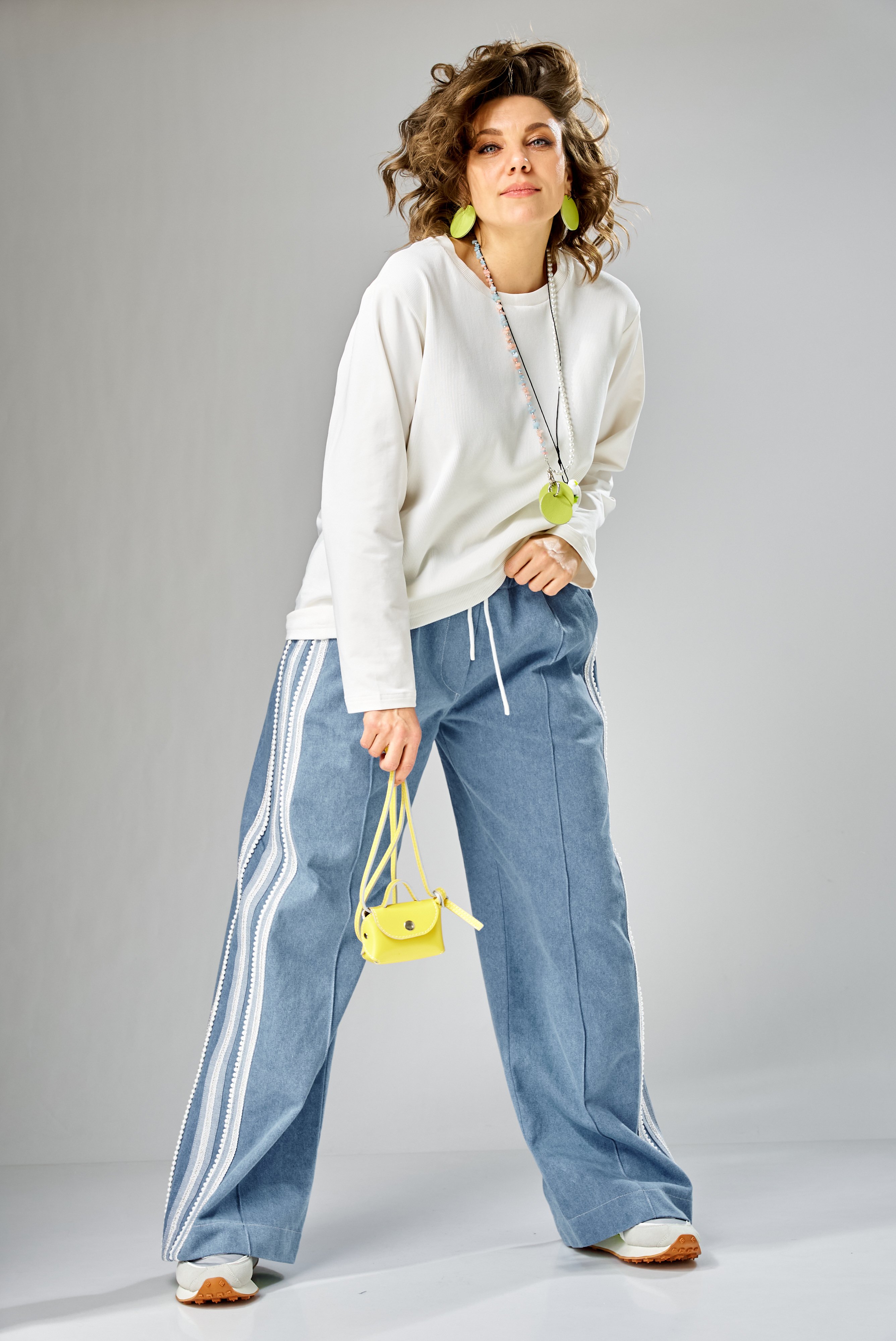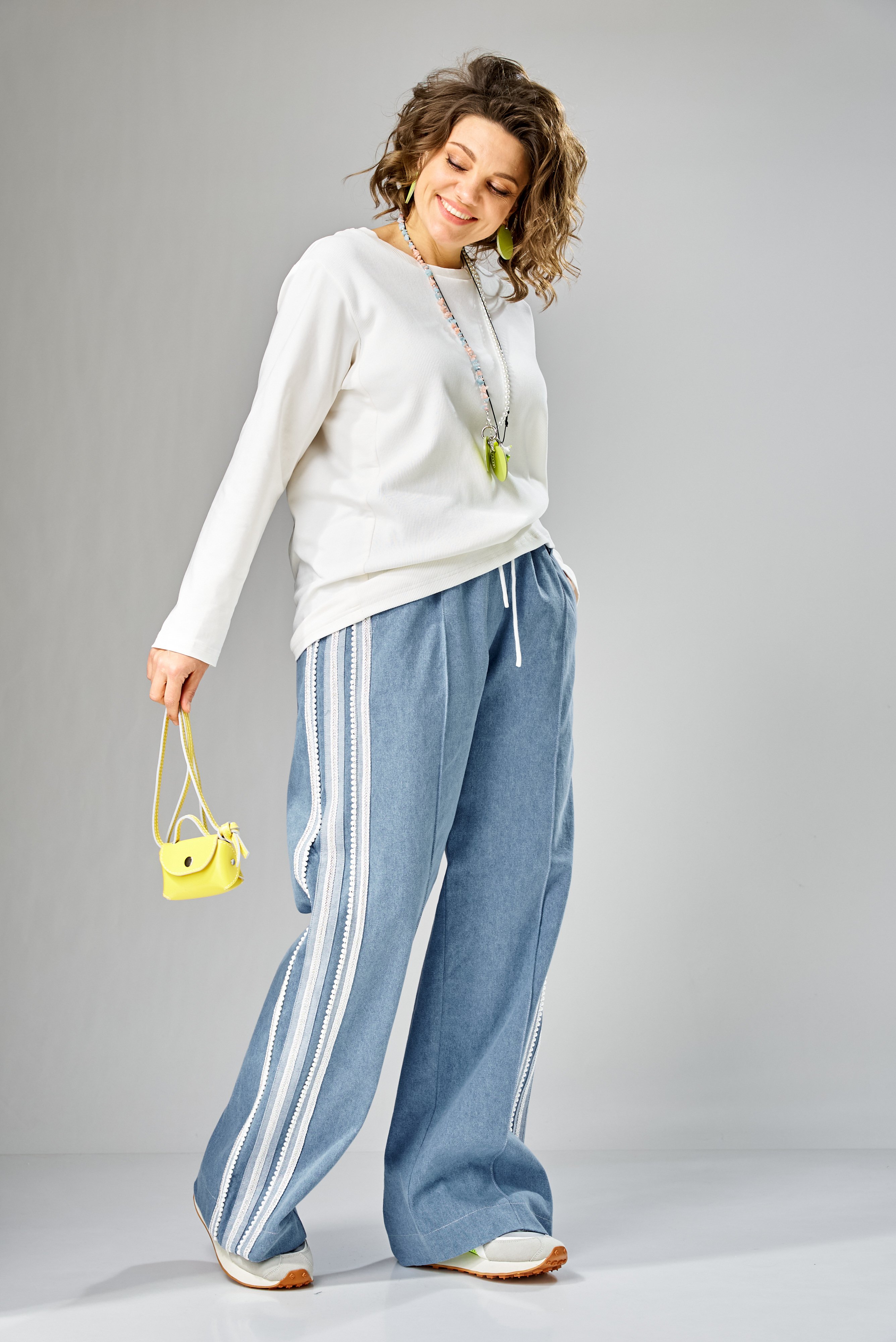 Специально продуманные вытягивающие линии, смещённый боковой шов и дополнительные вертикали визуально «собирают» фигуру и облегчают силуэт. Длинные рукава красиво сидят по руке, подчёркивая форму и создавая чистую, аккуратную линию.